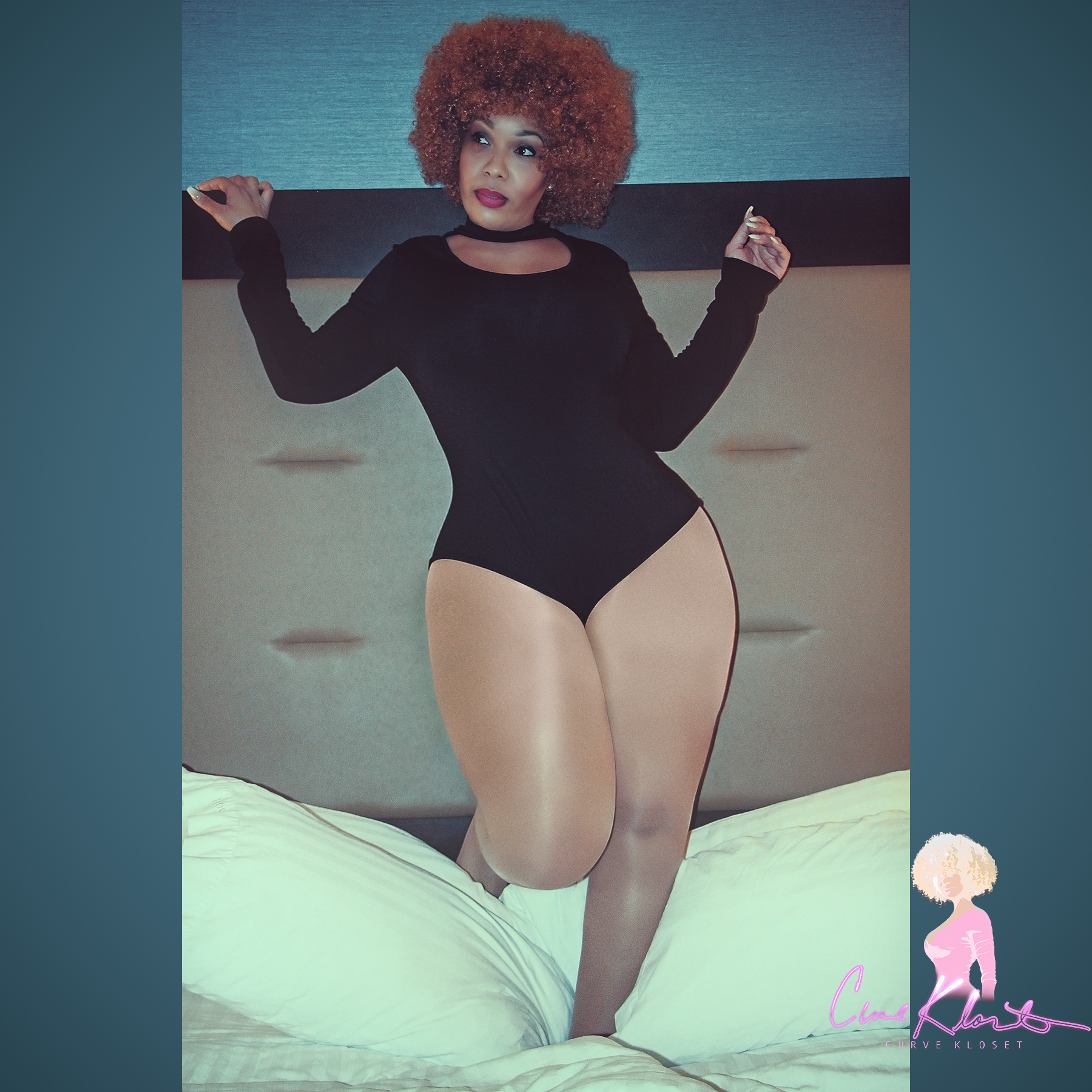MOCK NECK JET BLACK BODYSUIT. CUT OUT OVER BREAST, 3 SNAPS IN CROTCH. COTTON SPANDEX BLEND.