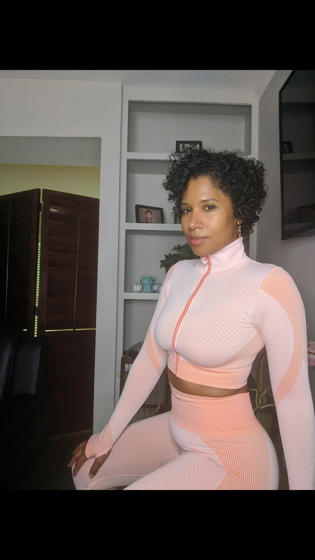 HIGH WAIST SEAMLESS LEGGINGS AND CROP WORK OUT JACKET. COLLAR IS RIBBED. MOISTURE WICKING MATERIAL, RIBBED COLLAR, STRETCHY (SQUAT PROOF), FITTED AND PERFECT FOR EVERYDAY WEAR OR THE GYM.