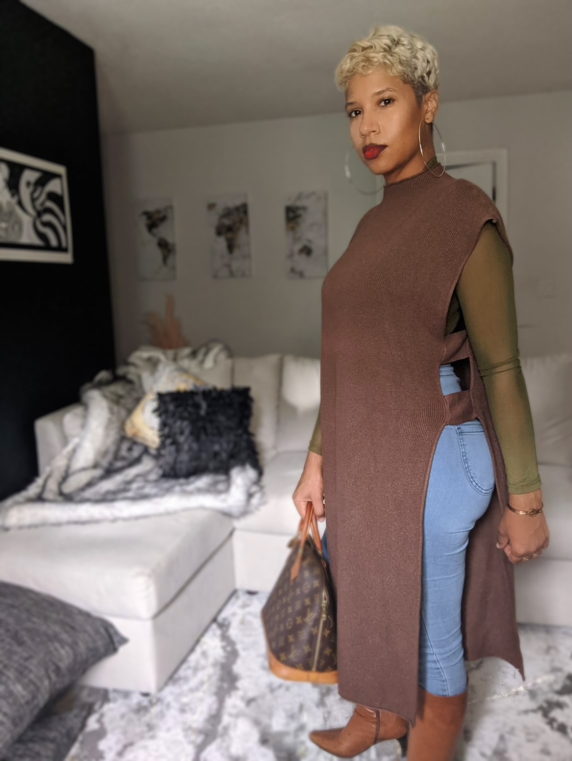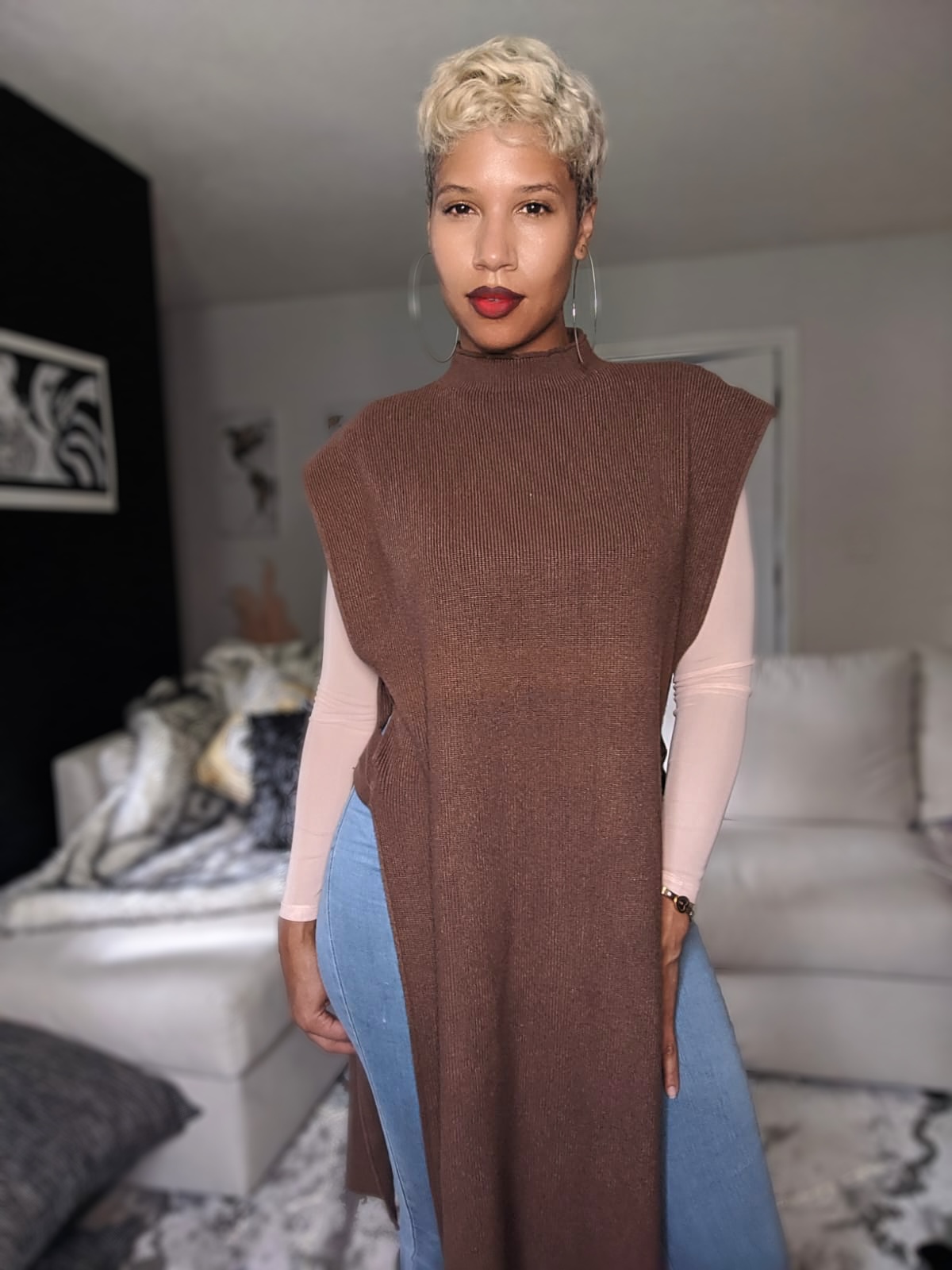 OPEN SIDED MOCK NECK PONCHO. HEAVY AND WARM.