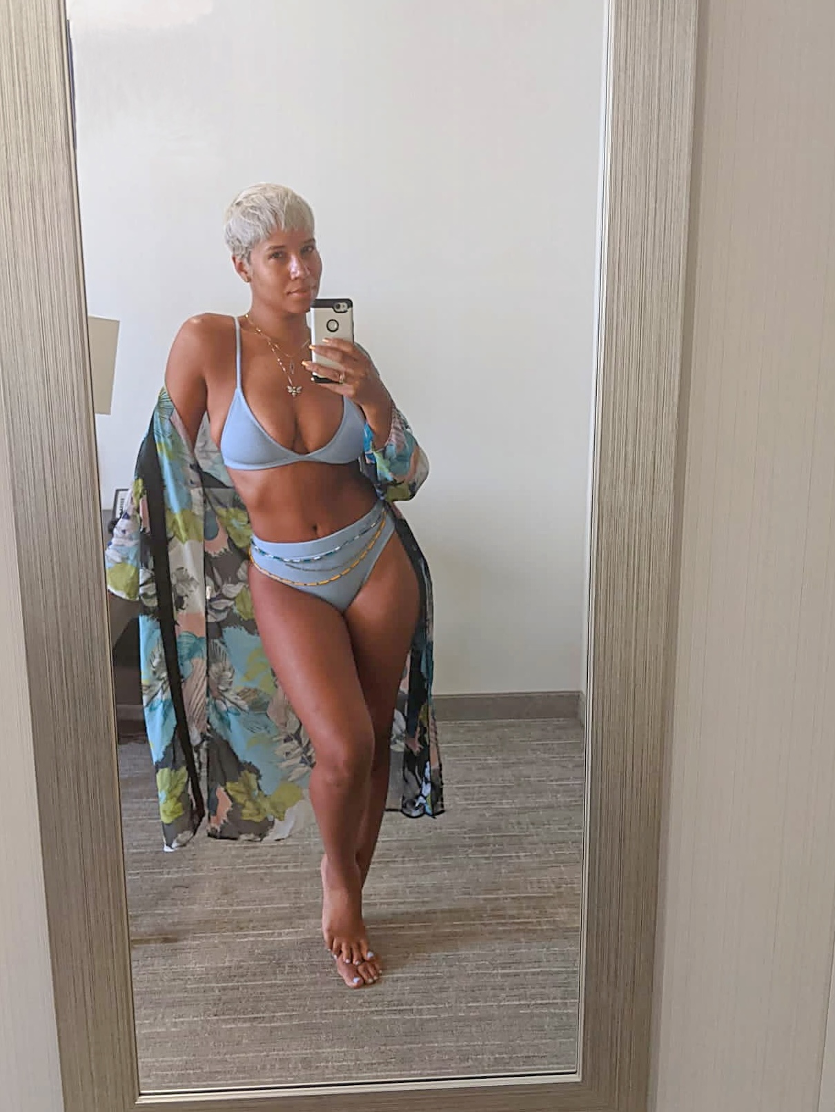 STRETCH KNIT BIKINI (not recommended for cup sizes above D) MODEL IS WEARING SIZE MEDIUM. True to size.