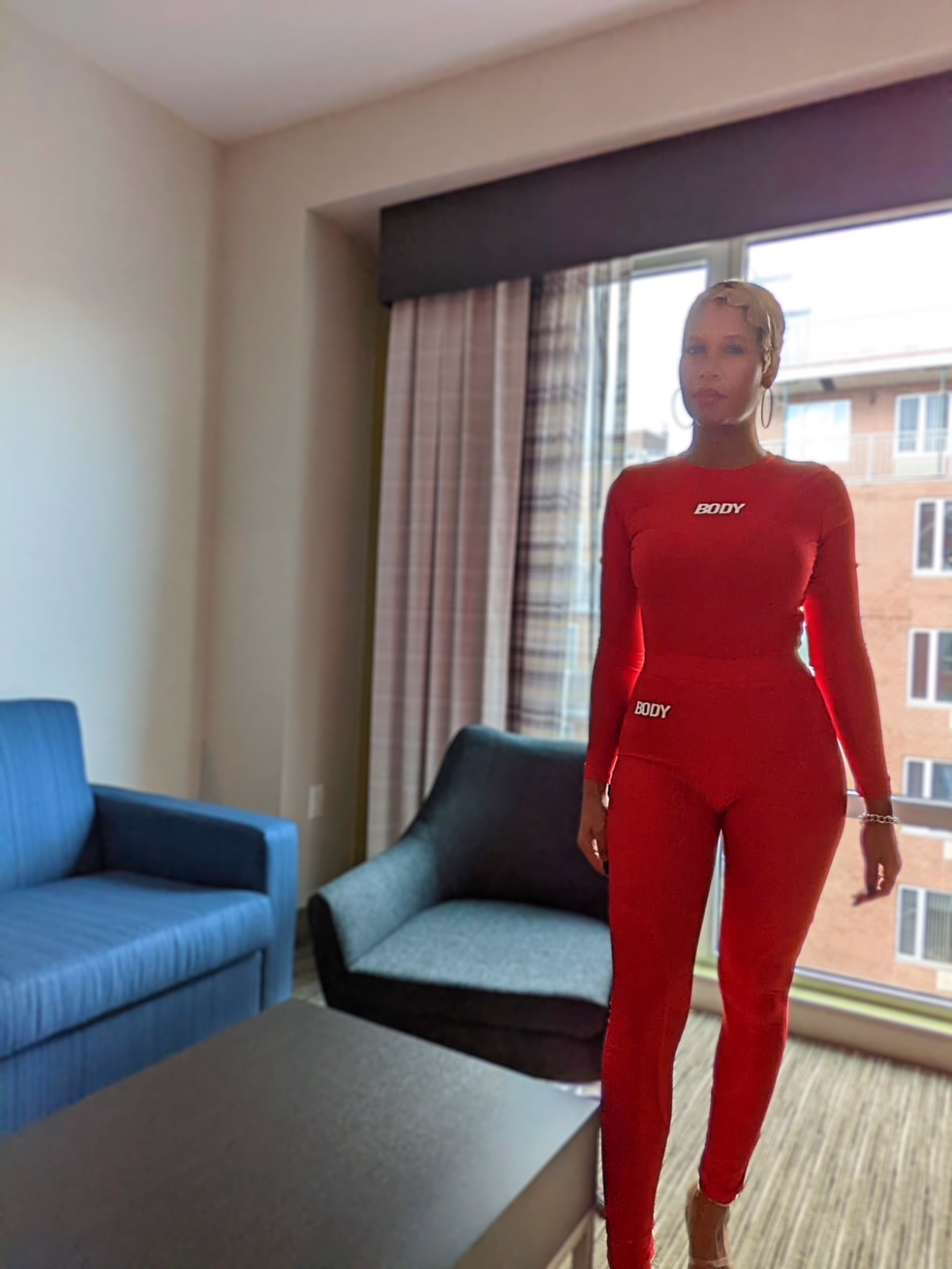 GIVE EM BODY IS EXACTLY WHAT THIS TWO PIECE SET DOES. LONG SLEEVE TWO PIECE SET FITS LIKE A GLOVE. DETAILED STITCHING AT THE KNEES, FORM FITTING AND SMOOTH STRETCHY MATERIAL.